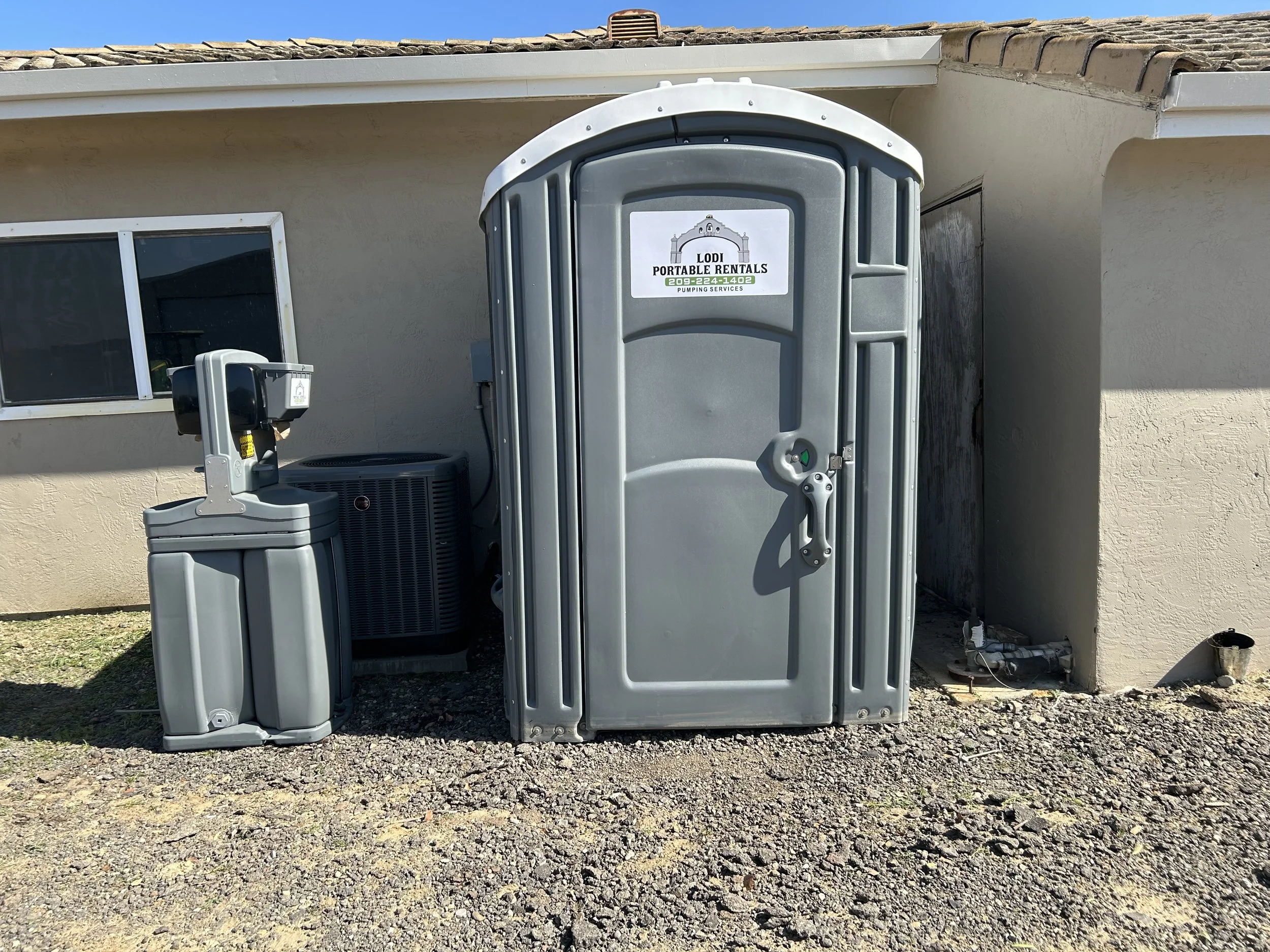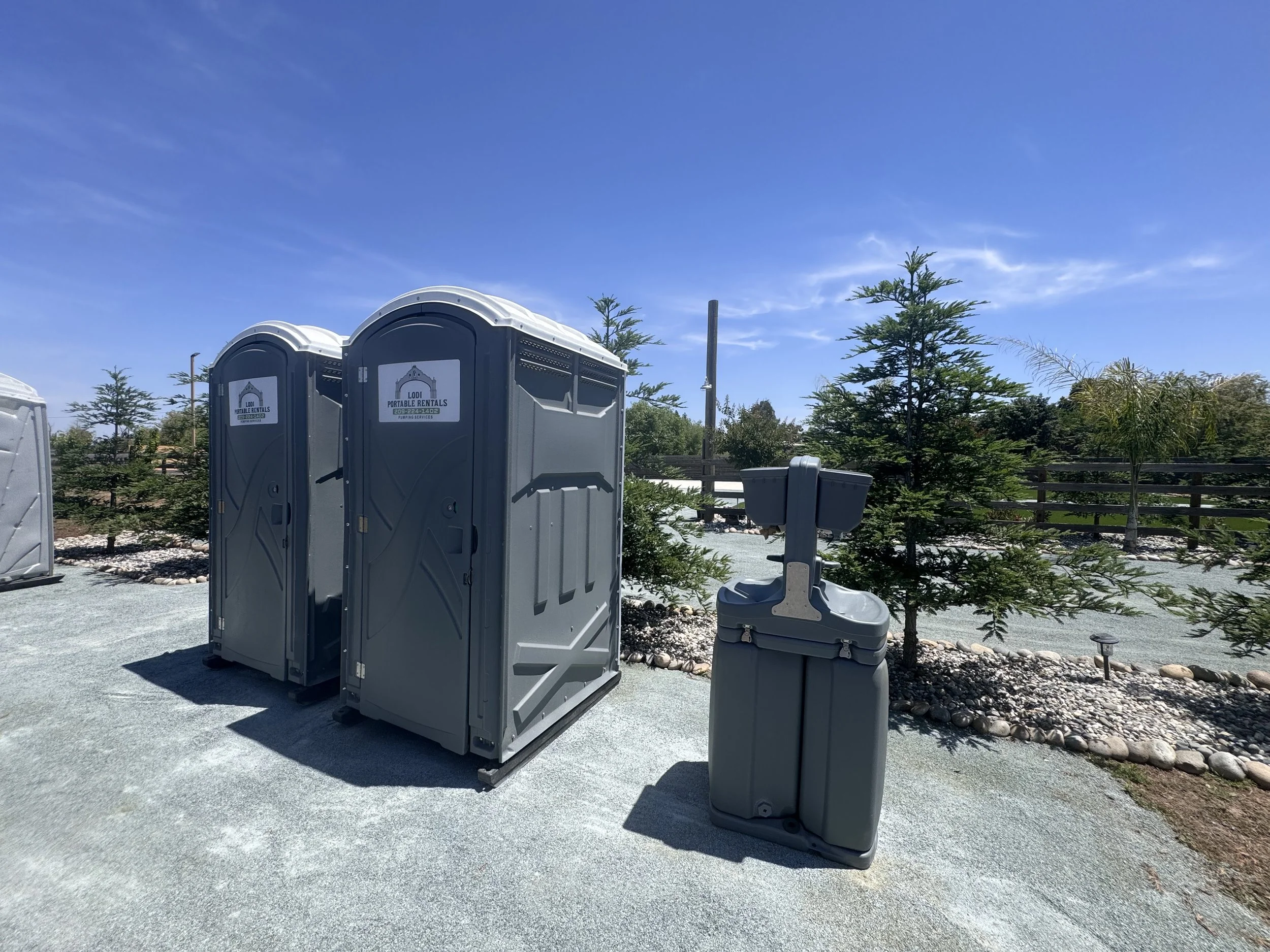 Pictures of some of our rentals. Our standard toilets, ADA toilets, standard with sink inside, and our handwashing stations.